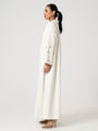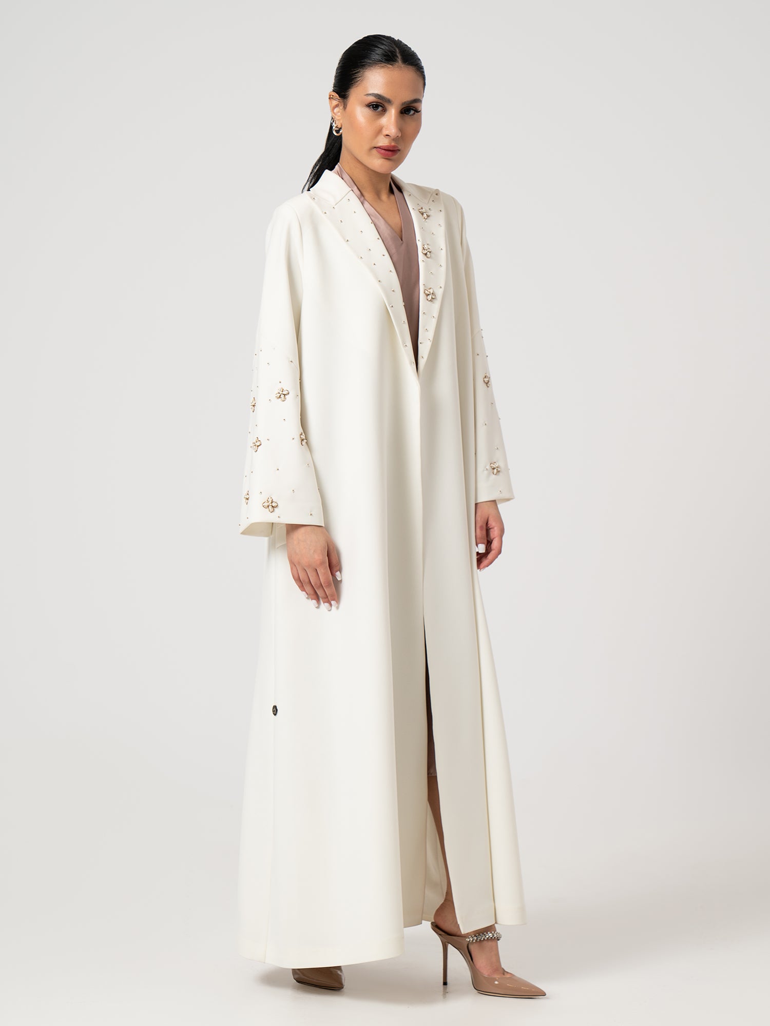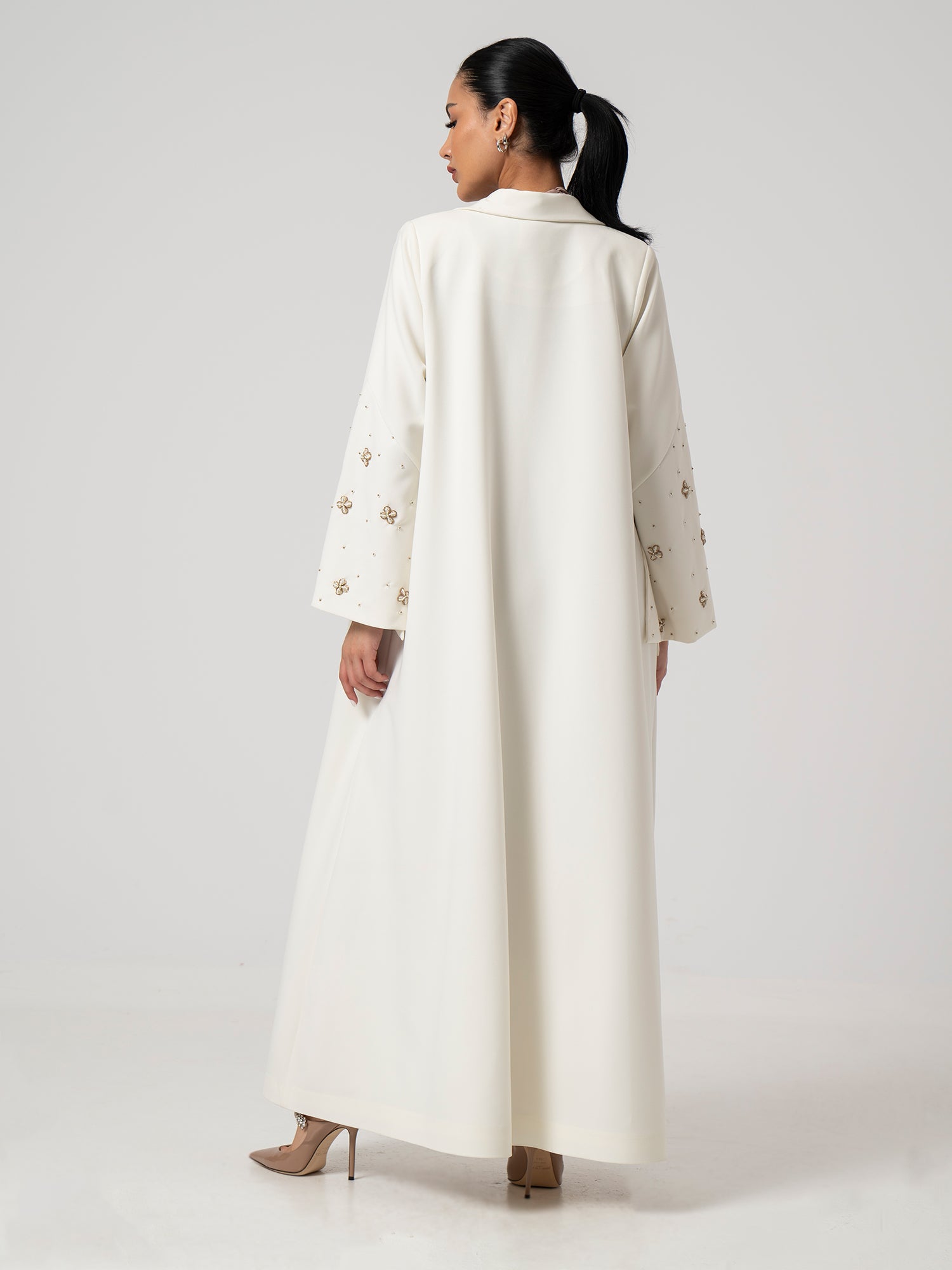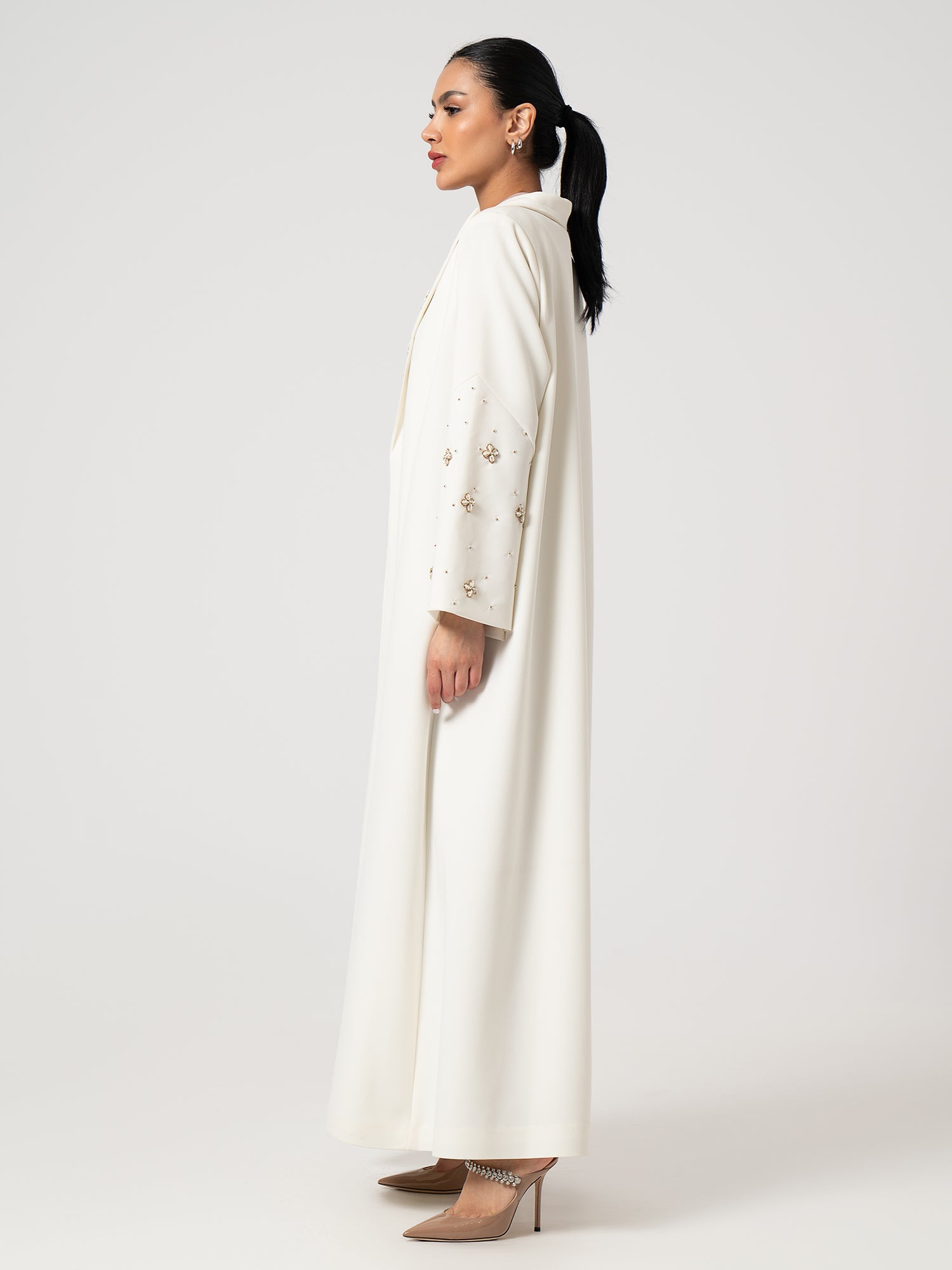 مصنوع من قماش الكريب الفاخر، مع تطريز زهور رقيق على الأكمام والأمام.