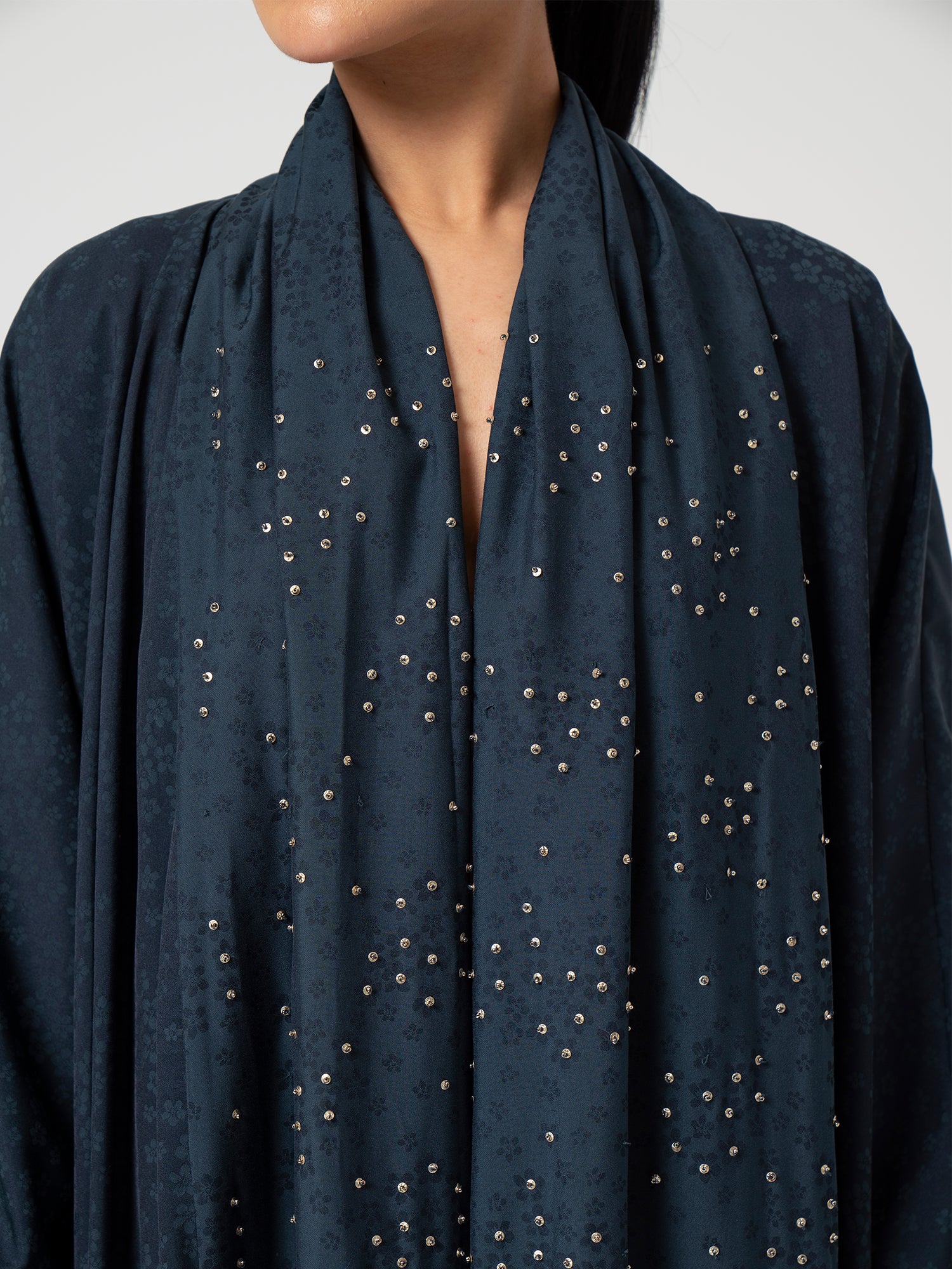 مصنوع من الحرير المغسول الفاخر، ومزين بتطريزات زهرية رقيقة تتدلى بكل سهولة.