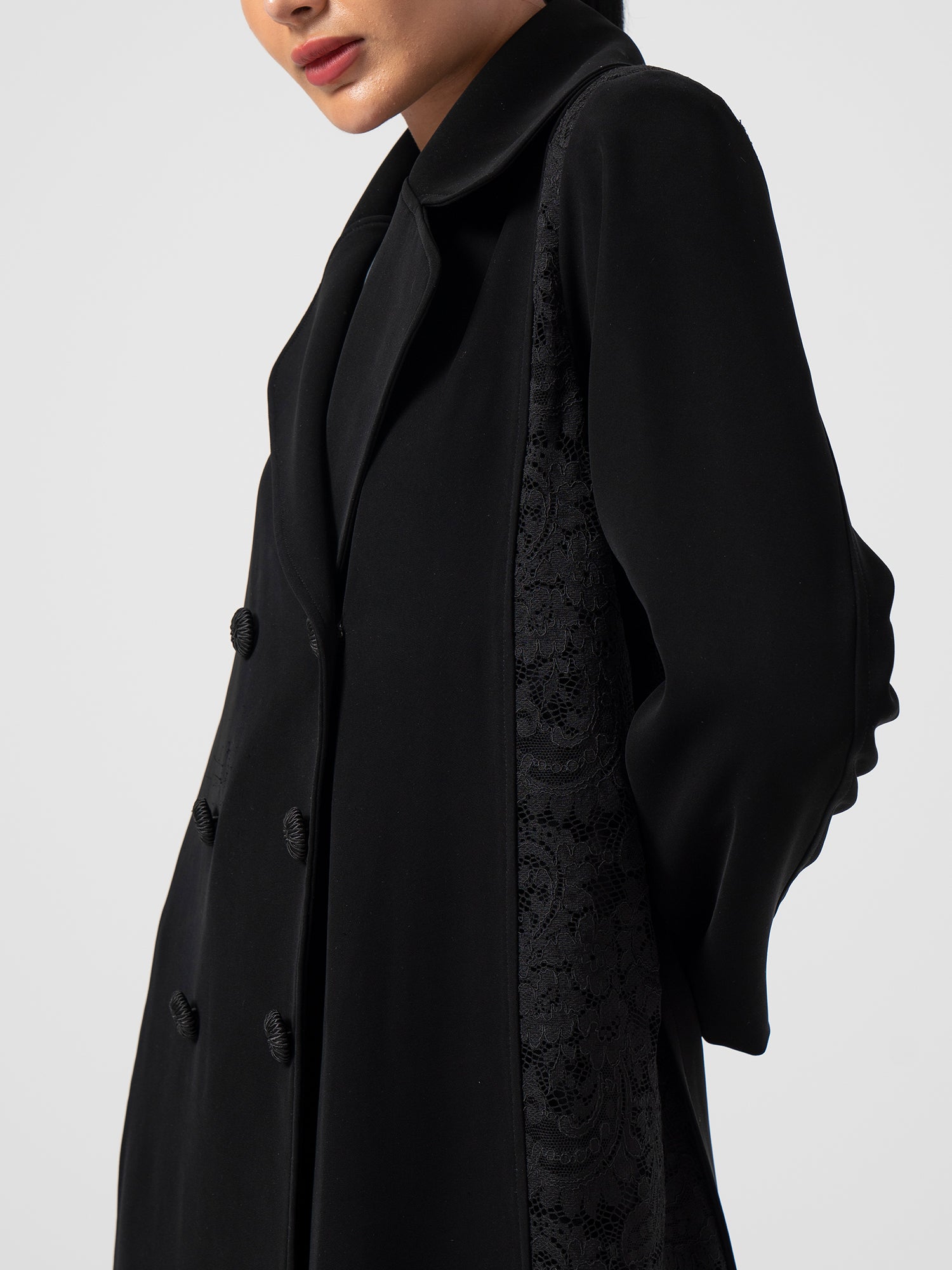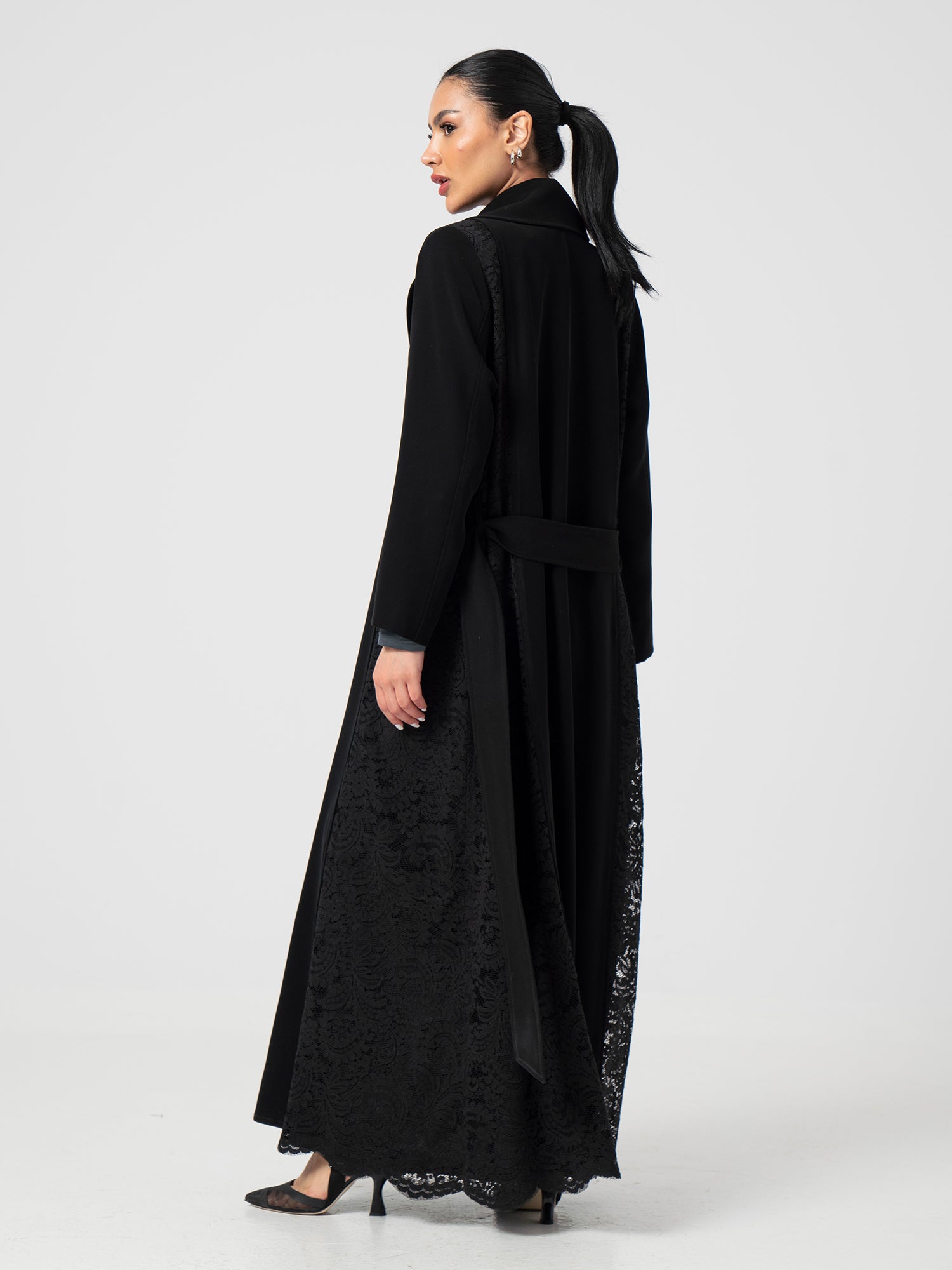 مصنوعة من قماش الكريب الفاخر، مع دانتيل رقيق على الجانبين وملمس حريري من الداخل